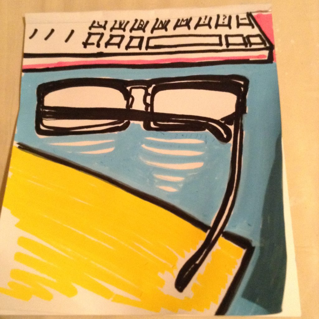 古い作品「メガネとパソコン」ポスターカラーで。